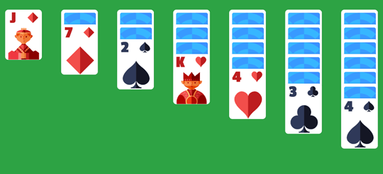 Gratis 7'er kabal, vanlig kabal, windows kabal på nett, legg .
